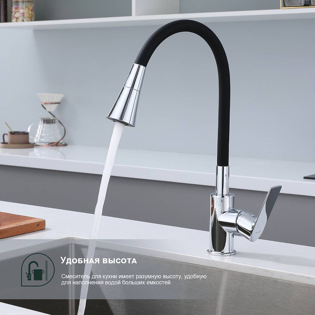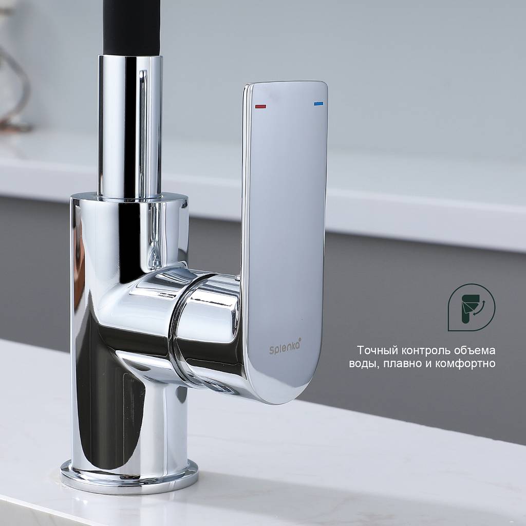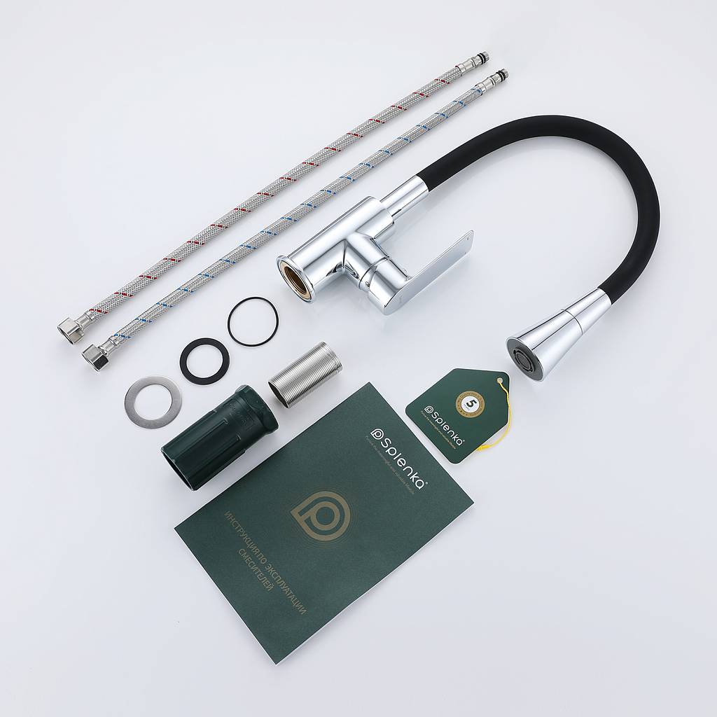 Смеситель для кухни с гибким изливом Splenka S05.43 хром/черный