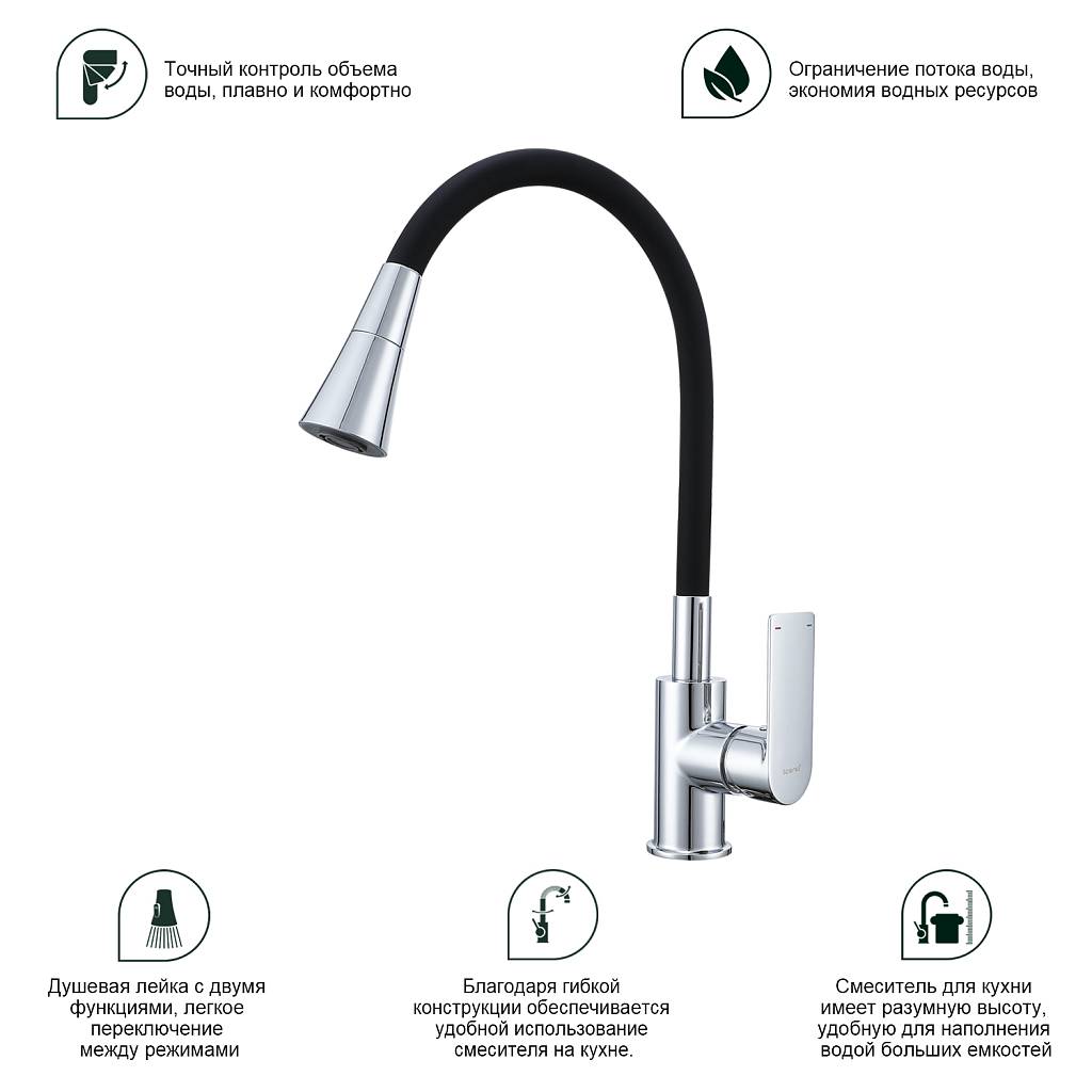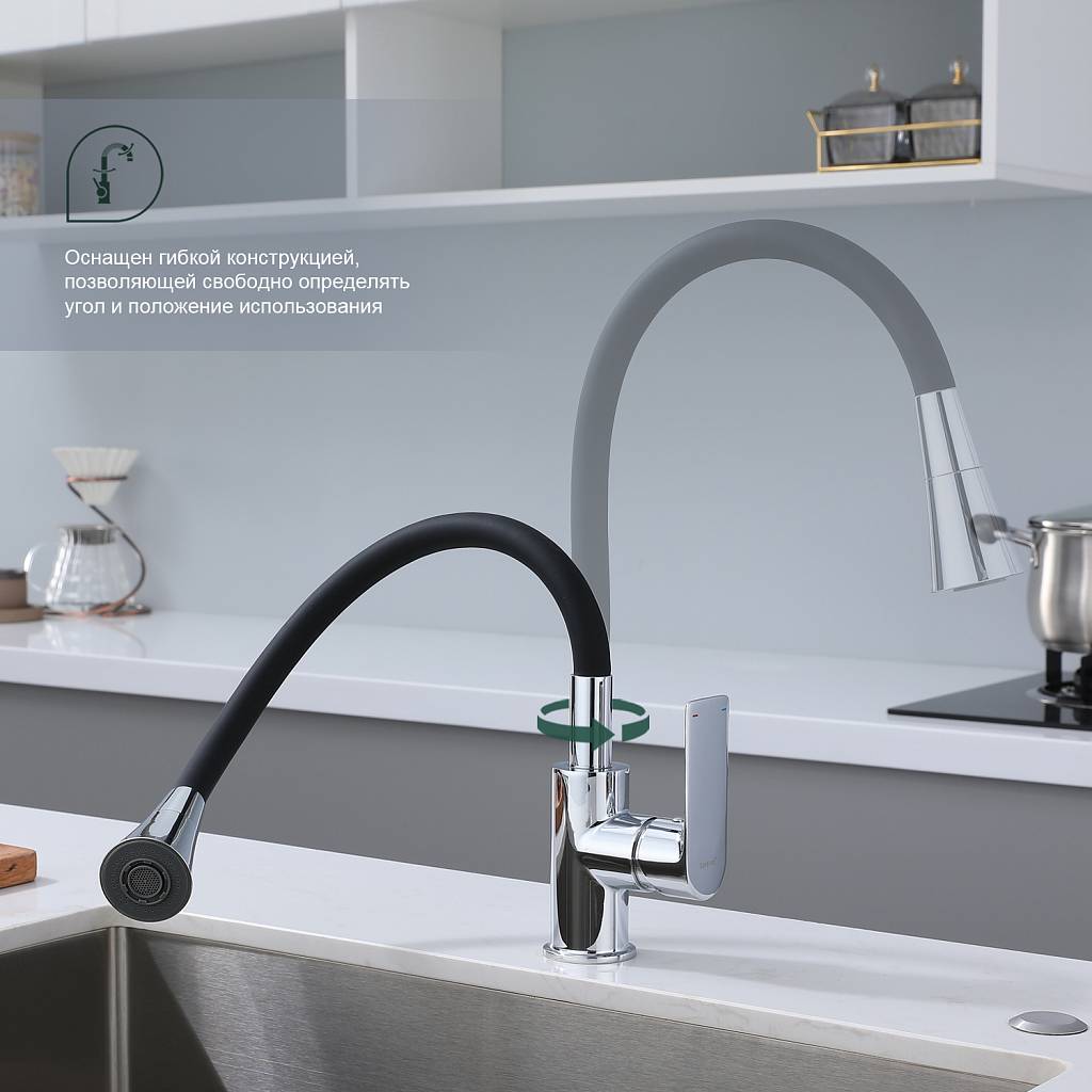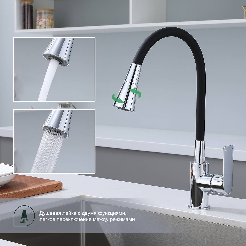 Смеситель для кухни с гибким изливом Splenka S05.43 хром/черный