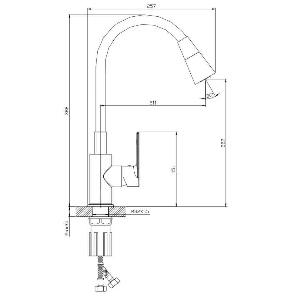 | Высота смесителя, см | 38,6 |