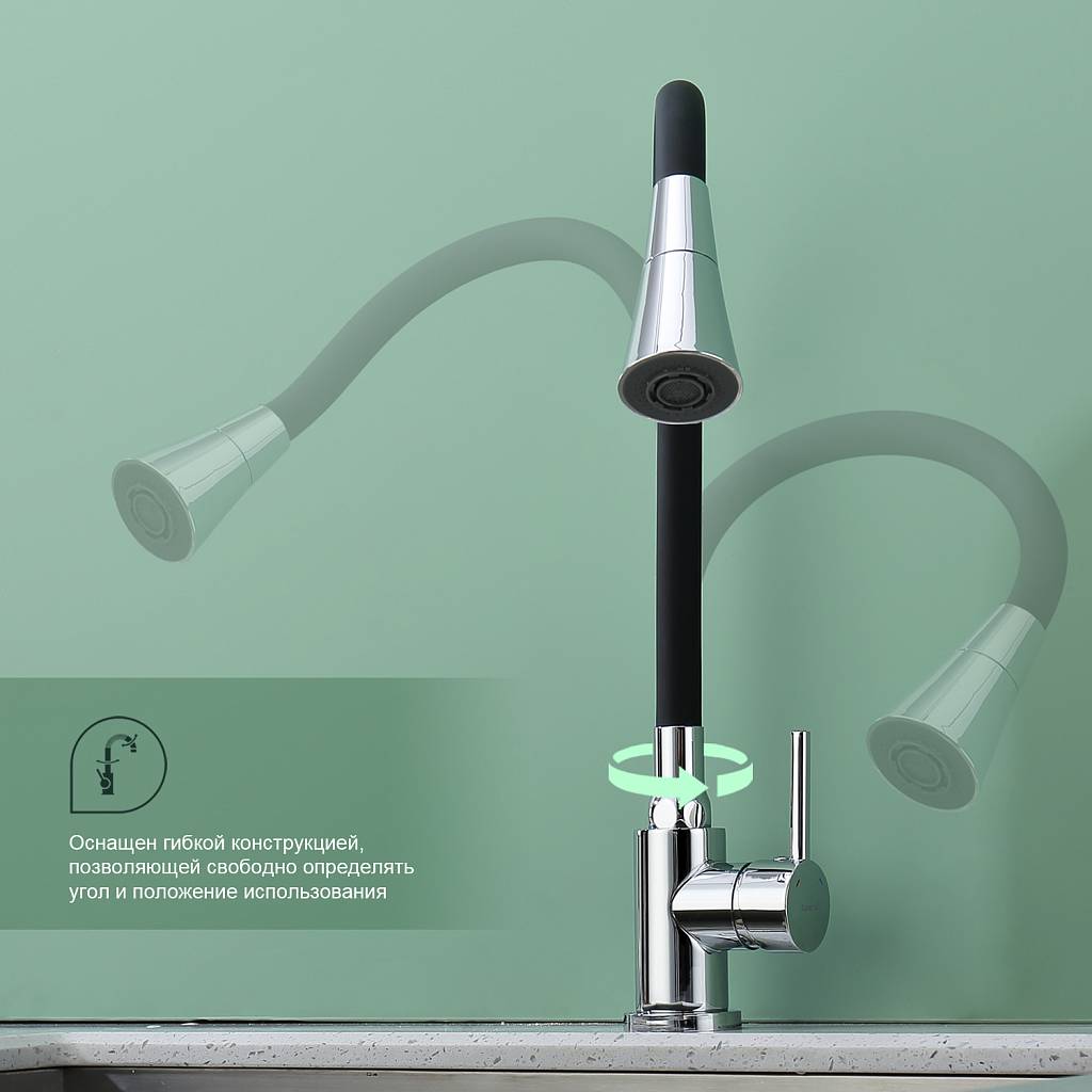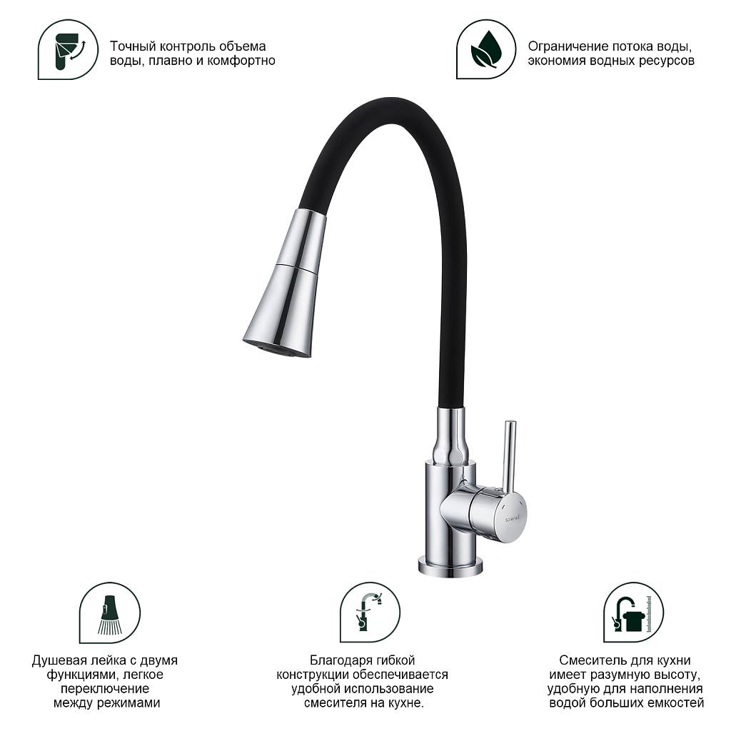 Смеситель для кухни с гибким изливом Splenka S201.4306 хром/черный