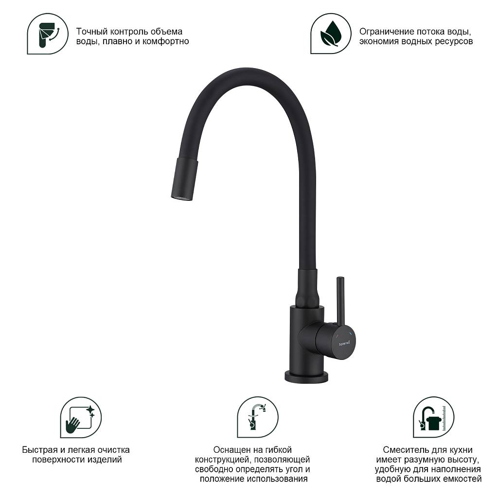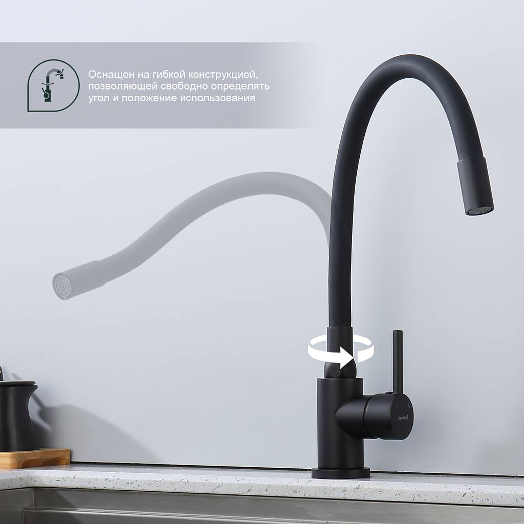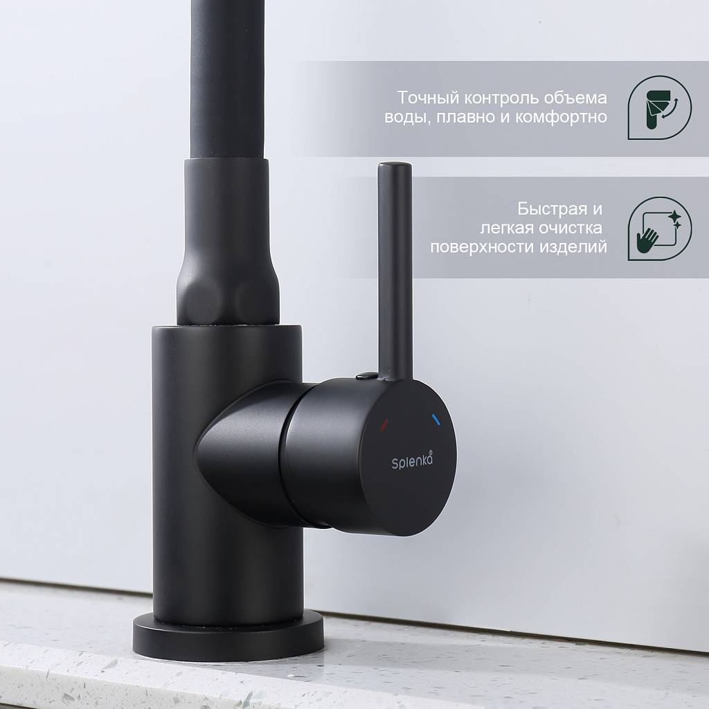Смеситель для кухни с гибким изливом Splenka S201.4406.06 черный матовый