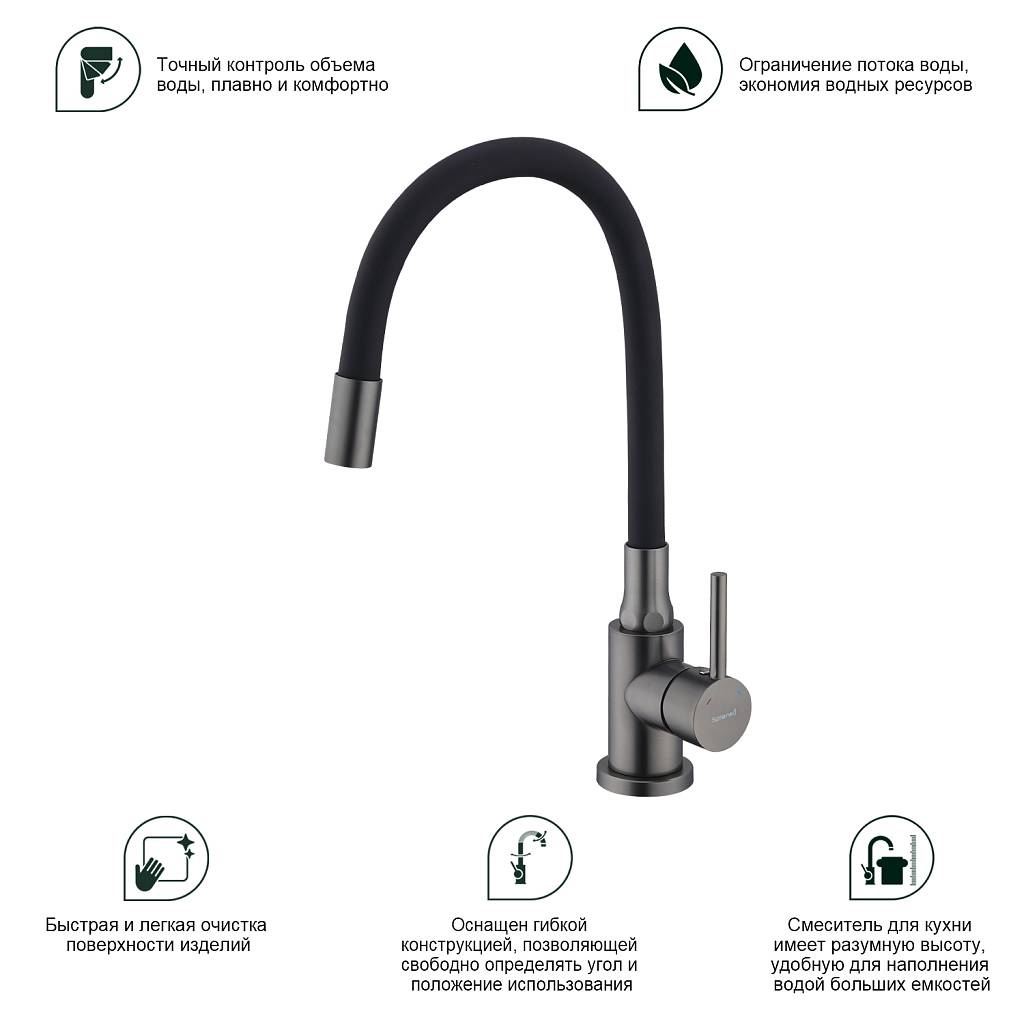 Смеситель для кухни с гибким изливом Splenka S201.4406.09 графит матовый/черный