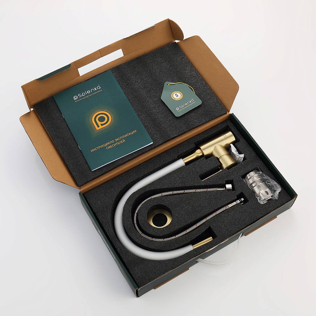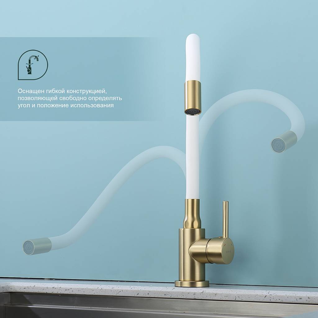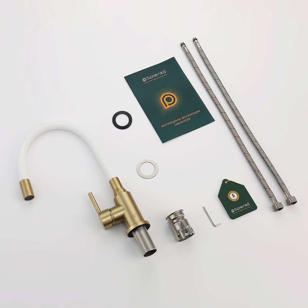 Смеситель для кухни с гибким изливом Splenka S201.4408.03 золотой сатин/белый