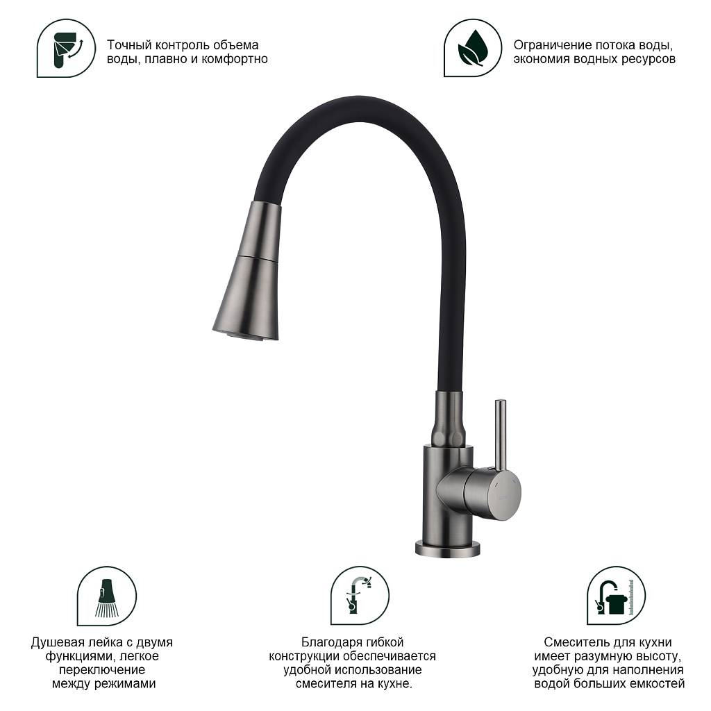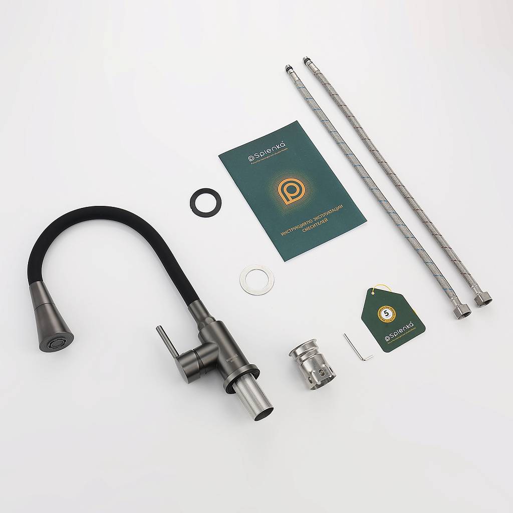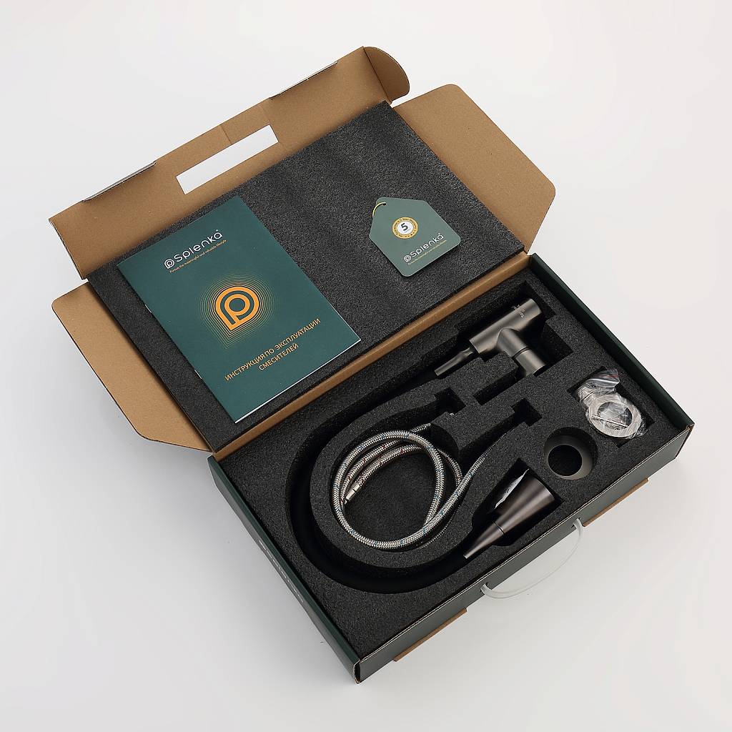 Смеситель для кухни с гибким изливом Splenka S201.S201.4306.09 графит матовый/черный