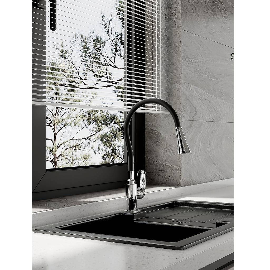 Смеситель для кухни с гибким изливом Splenka S41.43 хром/черный