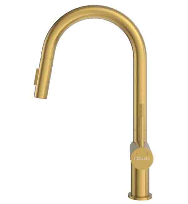 - Смеситель для кухни с выдвижным изливом Cezares Relax брашированное золото RELAX-KIT-BORO