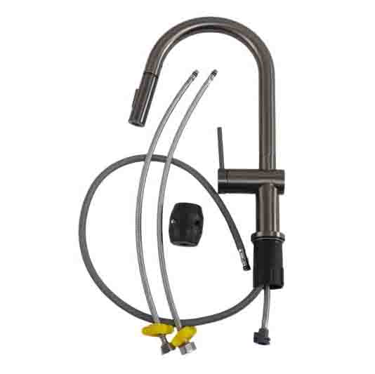 - Смеситель для кухни с выдвижным изливом Cezares Relax оружейная сталь RELAX-KIT-GM