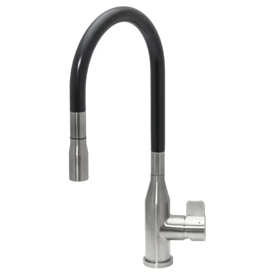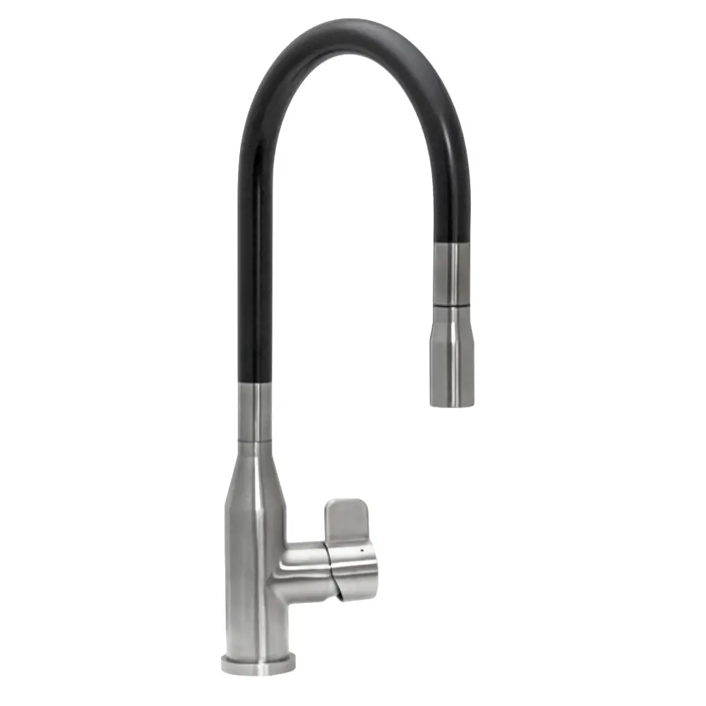Смеситель для кухни с выдвижным изливом SeaMan Eco Venice черный/сталь SSN-1096P-SS
