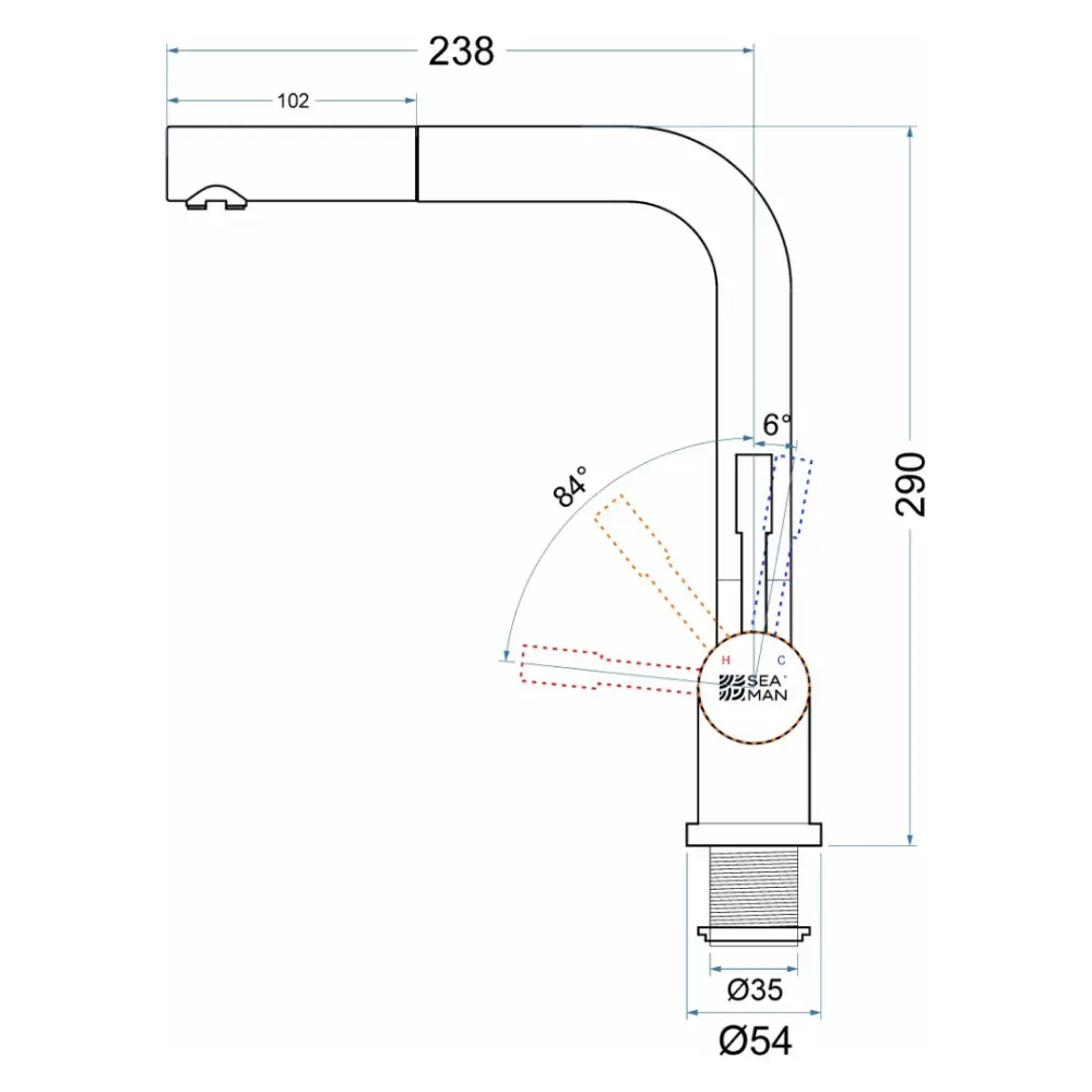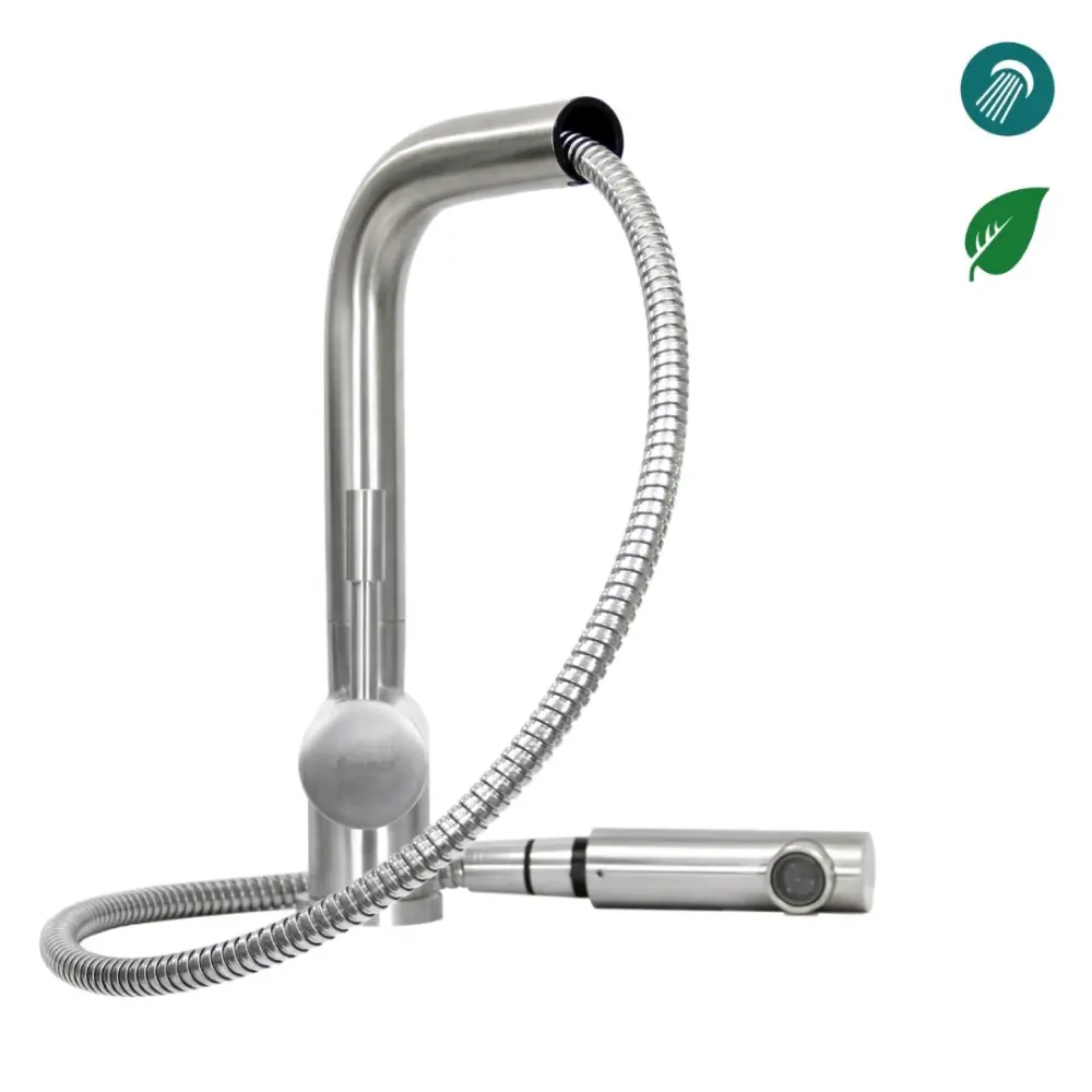 Смеситель для кухни с выдвижным изливом SeaMan Eco Venice нержавеющая сталь сатин SSN-0912P-SS