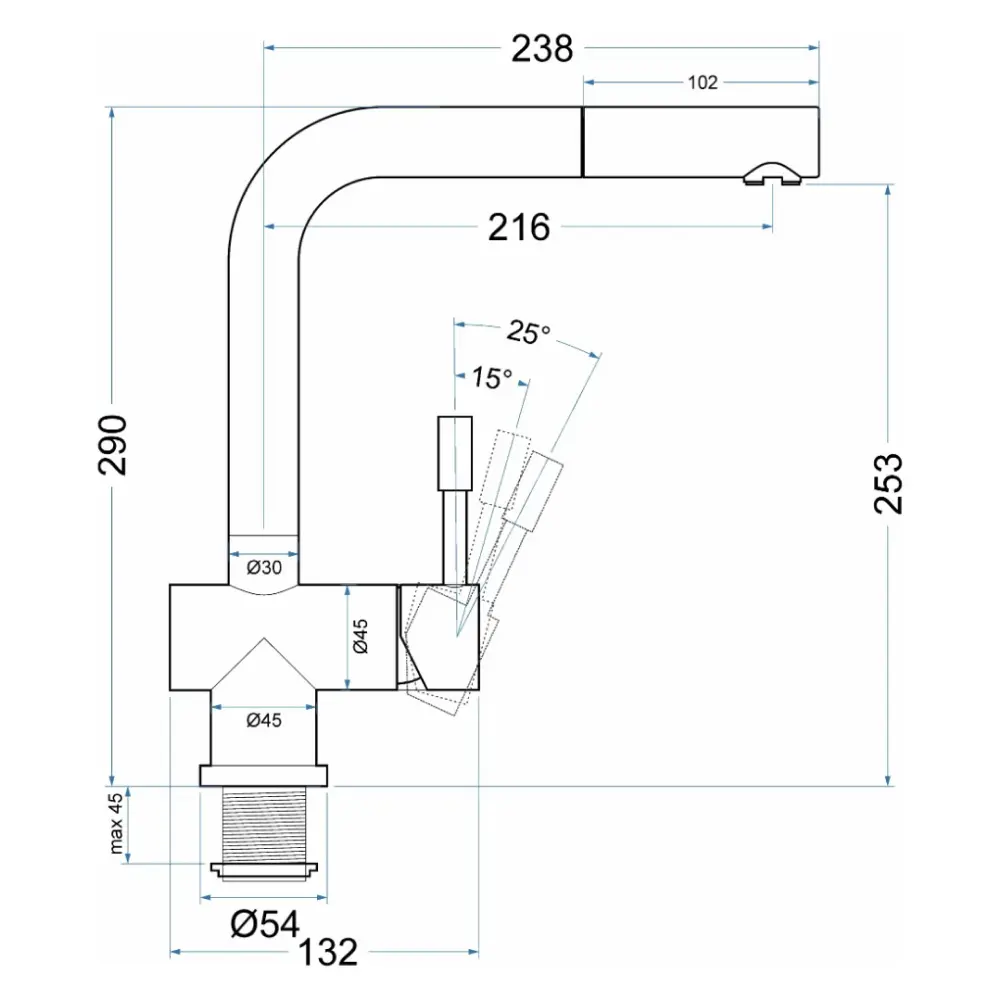 Длина излива: 216 мм