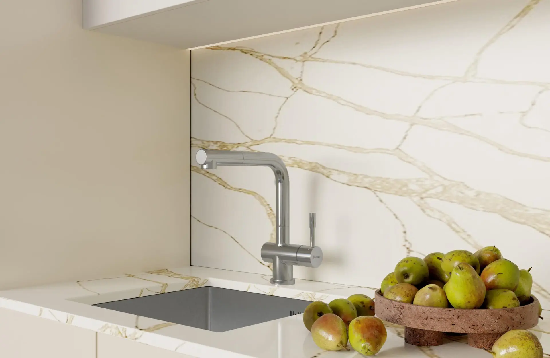 Обратный клапан на выдвижном изливе предотвращает от случайного падения капель на рабочую поверхность при выключенном потоке.