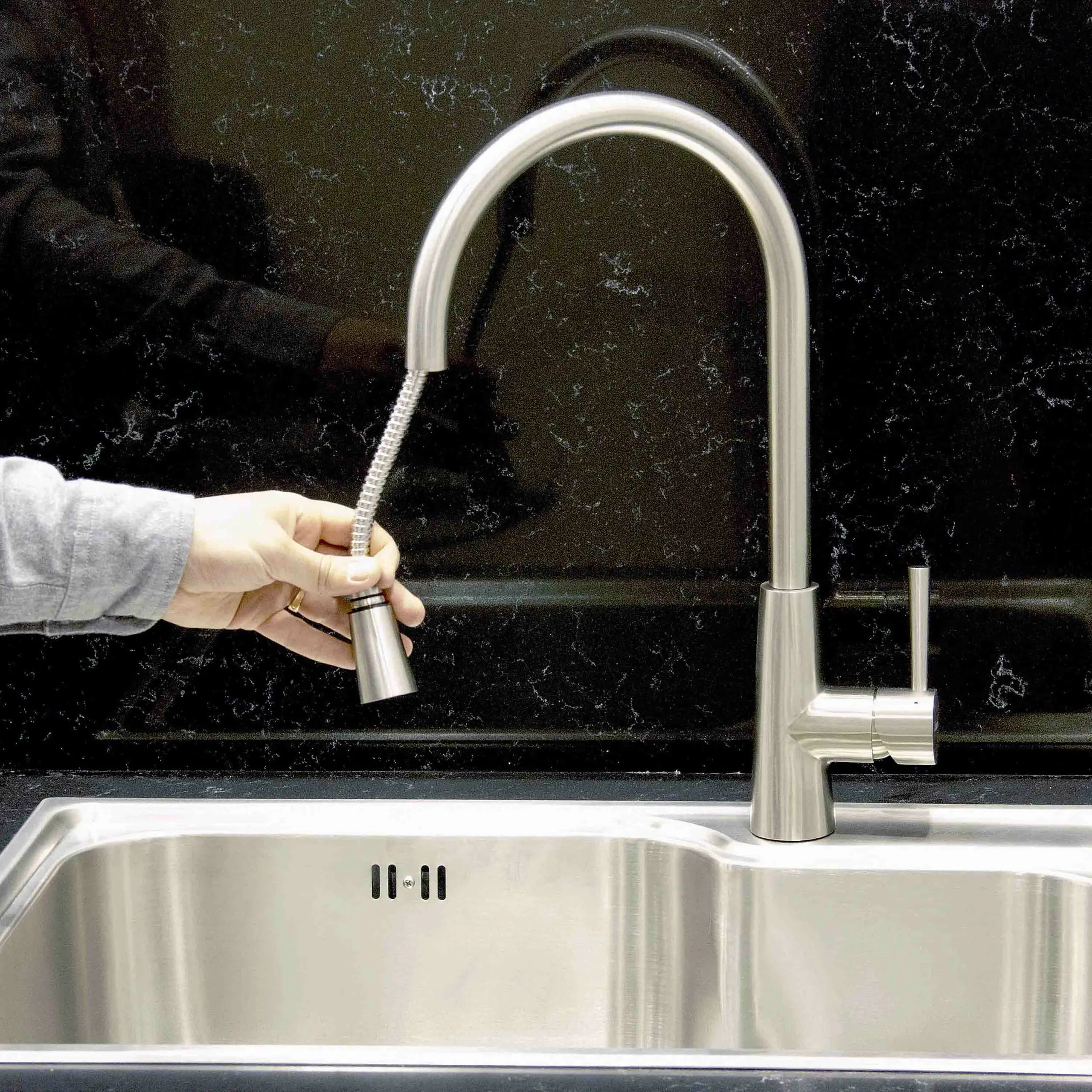 Смеситель для кухни с выдвижным изливом SeaMan Eco Venice нержавеющая сталь сатин SSN-1148P-SS