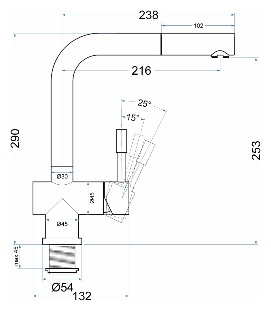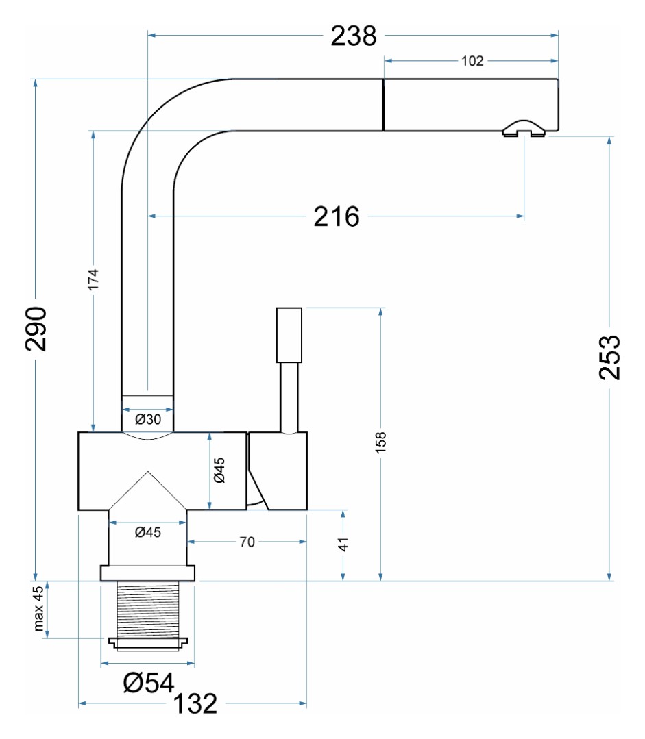 Длина излива: 216 мм