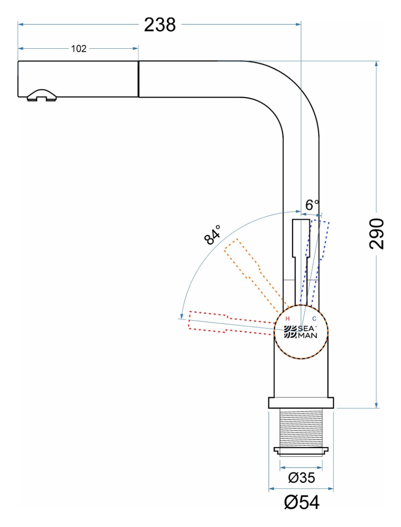 Полезная длина выдвижного излива: 80 см
