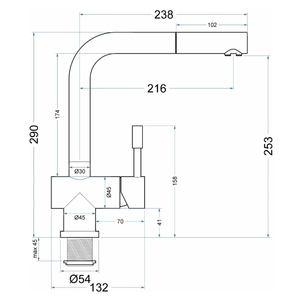 Длина излива: 216 мм