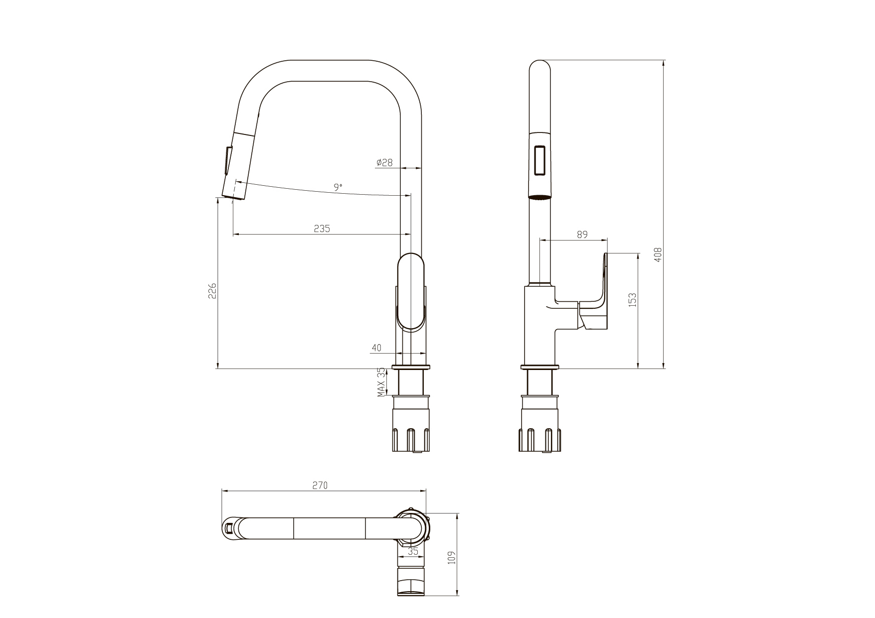 • оснащен высоким вытяжным изливом, удобен для мытья крупных предметов