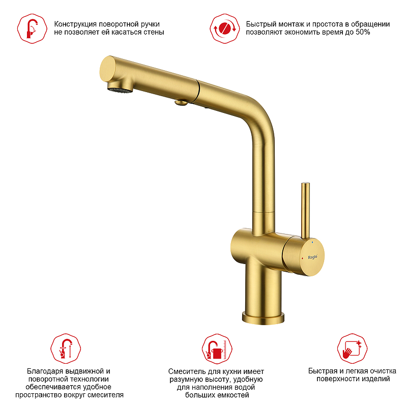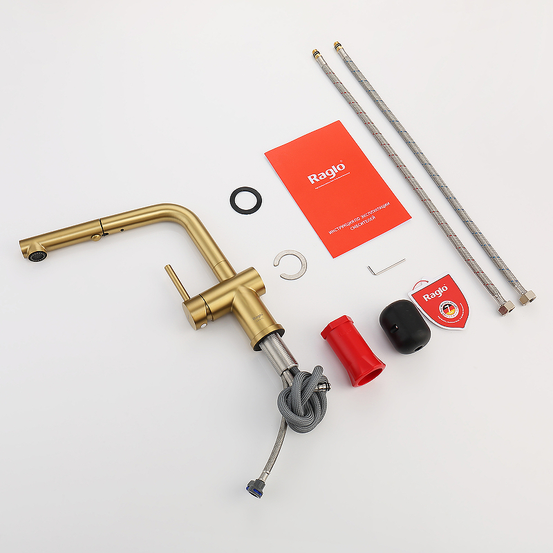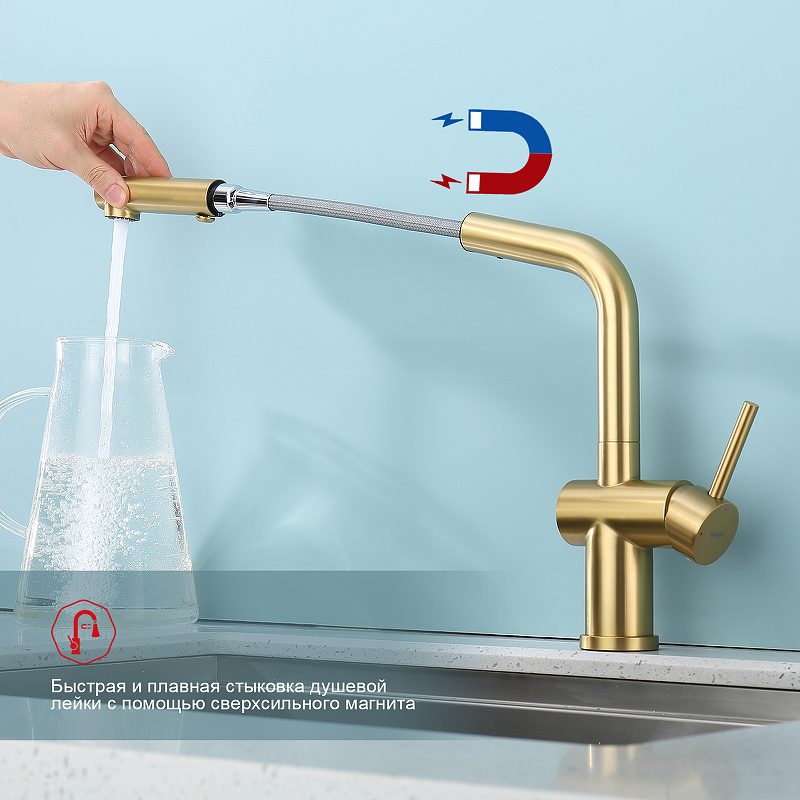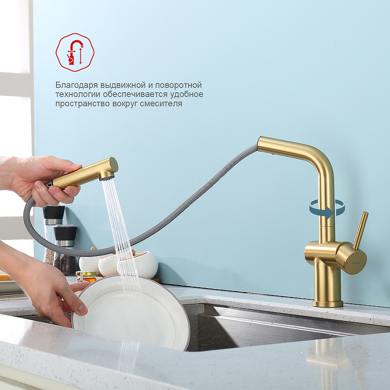 Смеситель для кухни с вытяжным изливом Raglo R86.49.03 сатин золотой