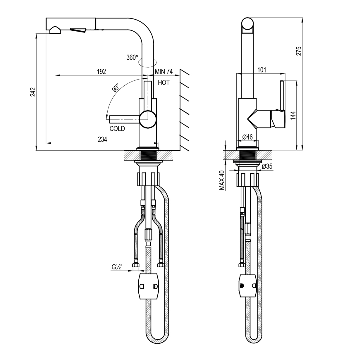 | В комплекте | Гибкая подводка 35 см, отвес, вытяжной шланг 1,5 м, крепеж |