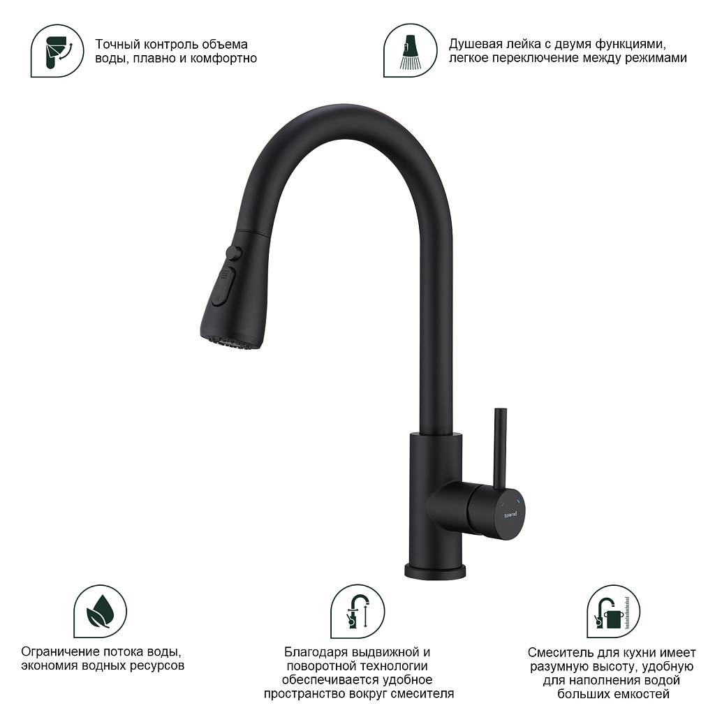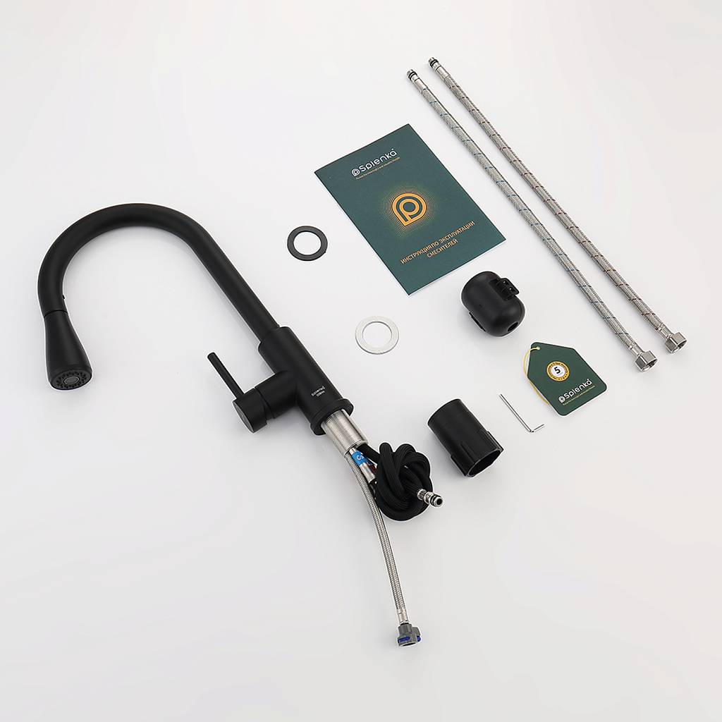 Смеситель для кухни с вытяжным изливом Splenka S203.49.06 черный матовый