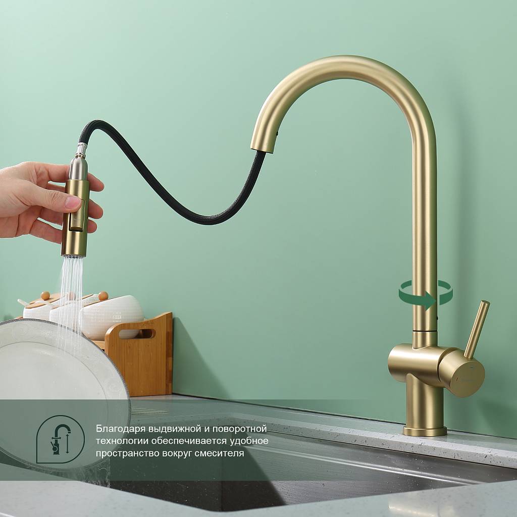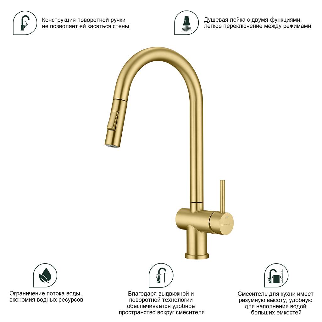 Смеситель для кухни с вытяжным изливом Splenka S204.49.03 золотой сатин