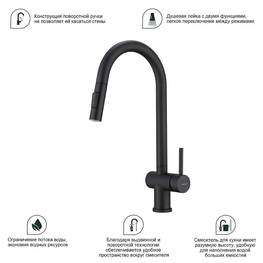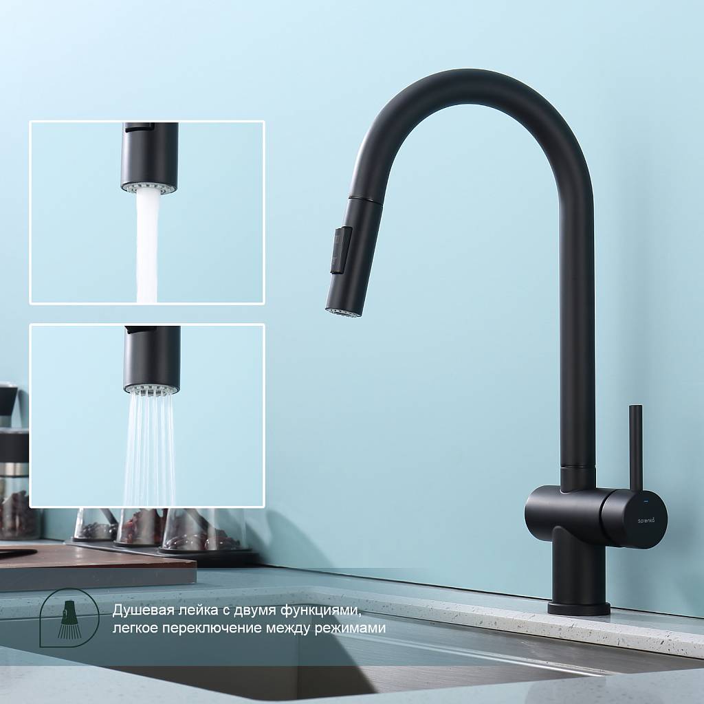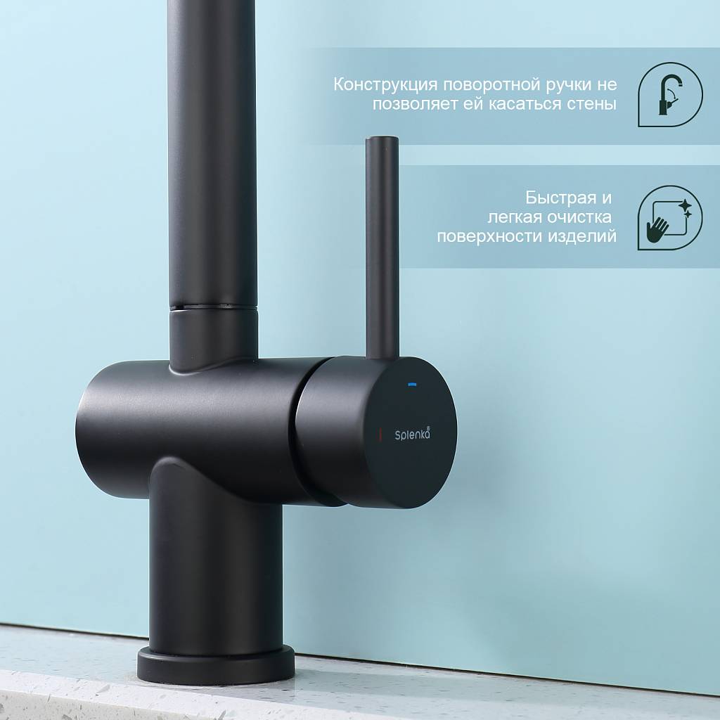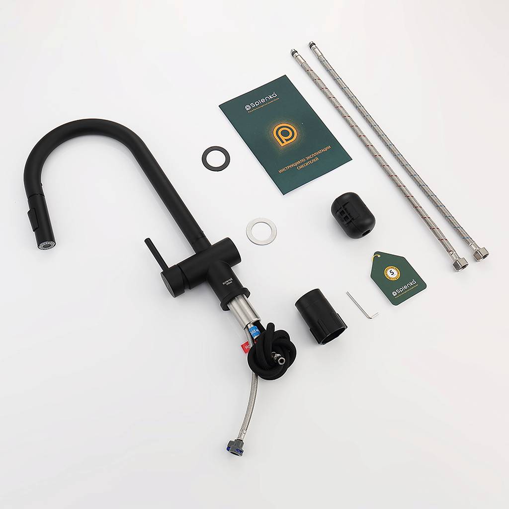 Смеситель для кухни с вытяжным изливом Splenka S204.49.06 черный матовый
