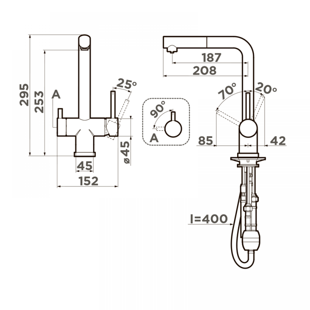 | Особенности | Выдвижной гибкий излив / встроенный кран для питьевой воды |
