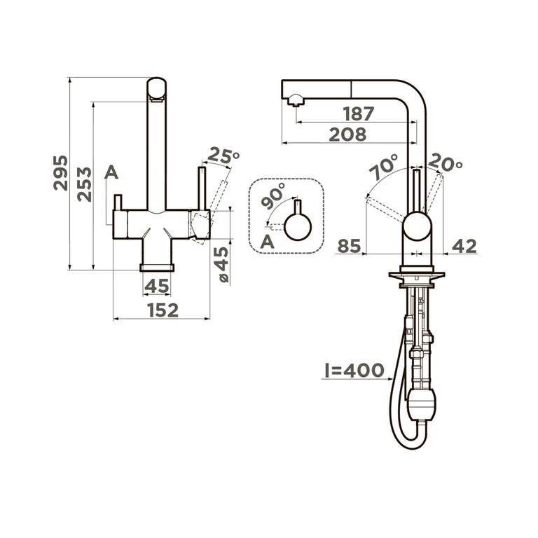 | Особенности | Выдвижной излив / встроенный кран для питьевой воды |