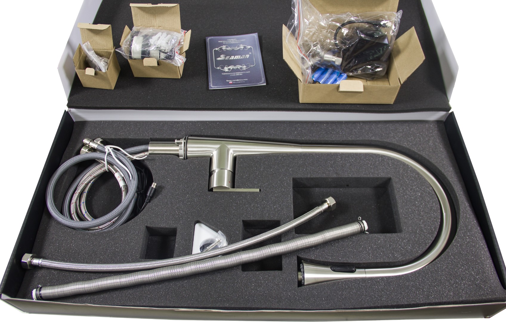 Смеситель для кухни с выдвижным изливом сенсорный SeaMan Eco Venice нержавеющая сталь сатин SSN-1801P-SS