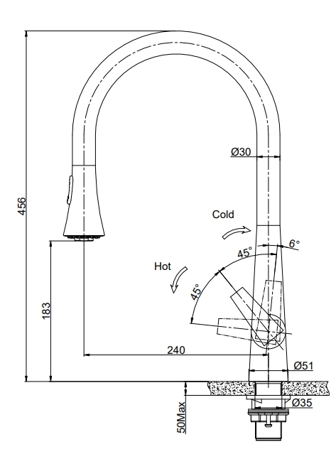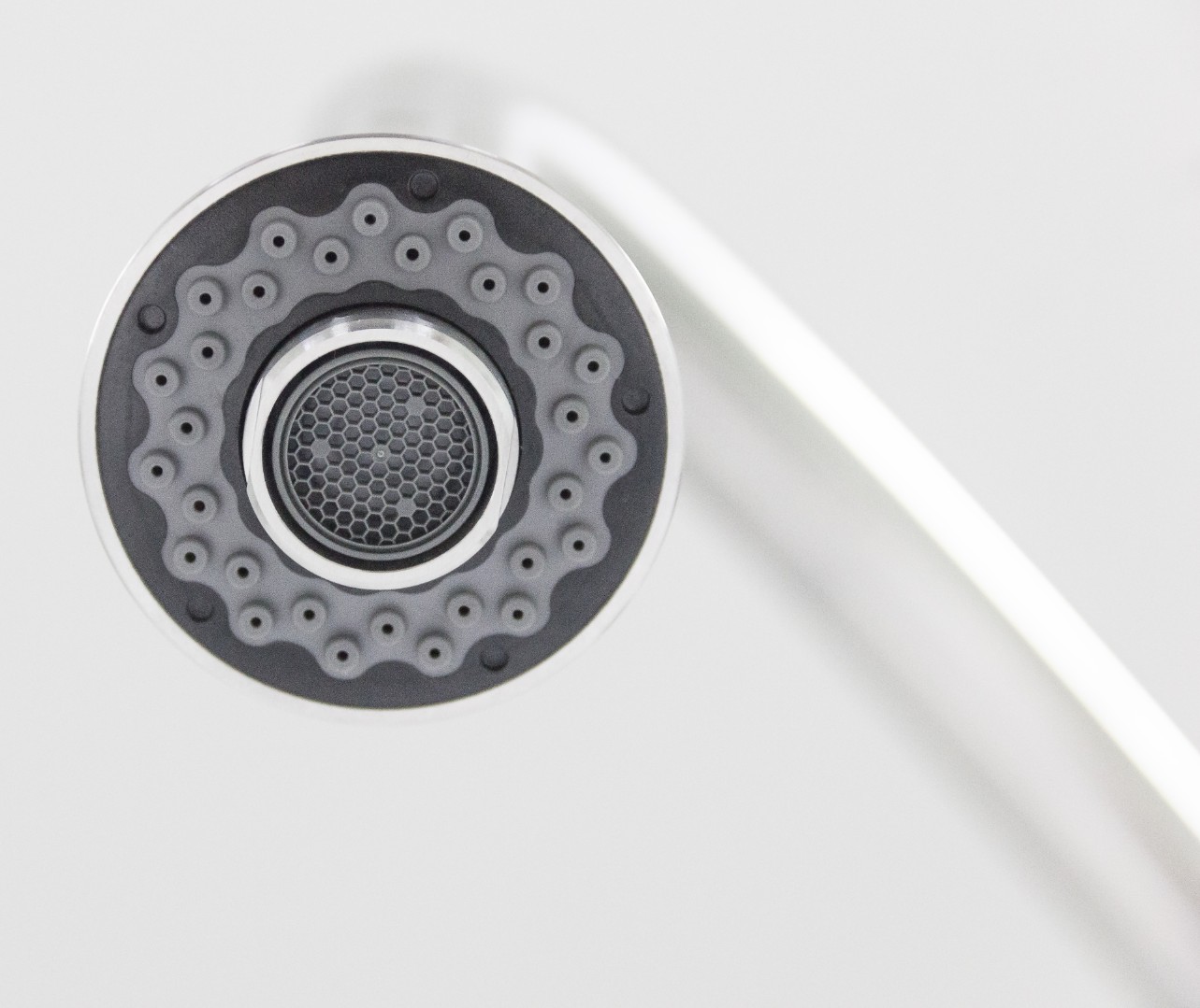 Обратный клапан на выдвижном изливе предотвращает от случайного падения капель на рабочую поверхность при выключенном потоке.