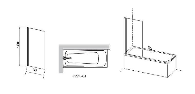 Шторка для ванны неподвижная Ravak Pivot PVS1 80х140 см белый/транспарент 79840100Z1