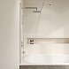 Преимуществом данной шторки является прозрачное стекло, что создает визуальное ощущение пространства, а также хромированный цвет профиля, который прекрасно сочетается с любым дизайном ванной комнаты. Высота шторки составляет 1500 мм, что позволяет использовать ее в большинстве стандартных размеров ванн.