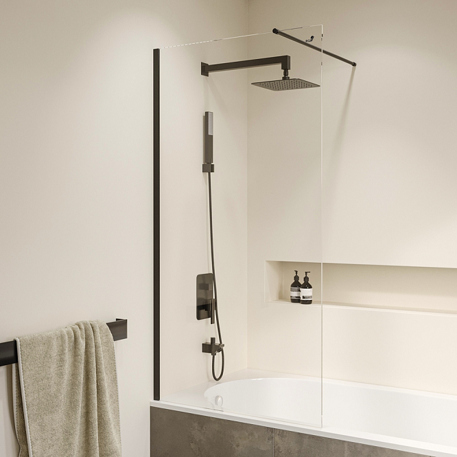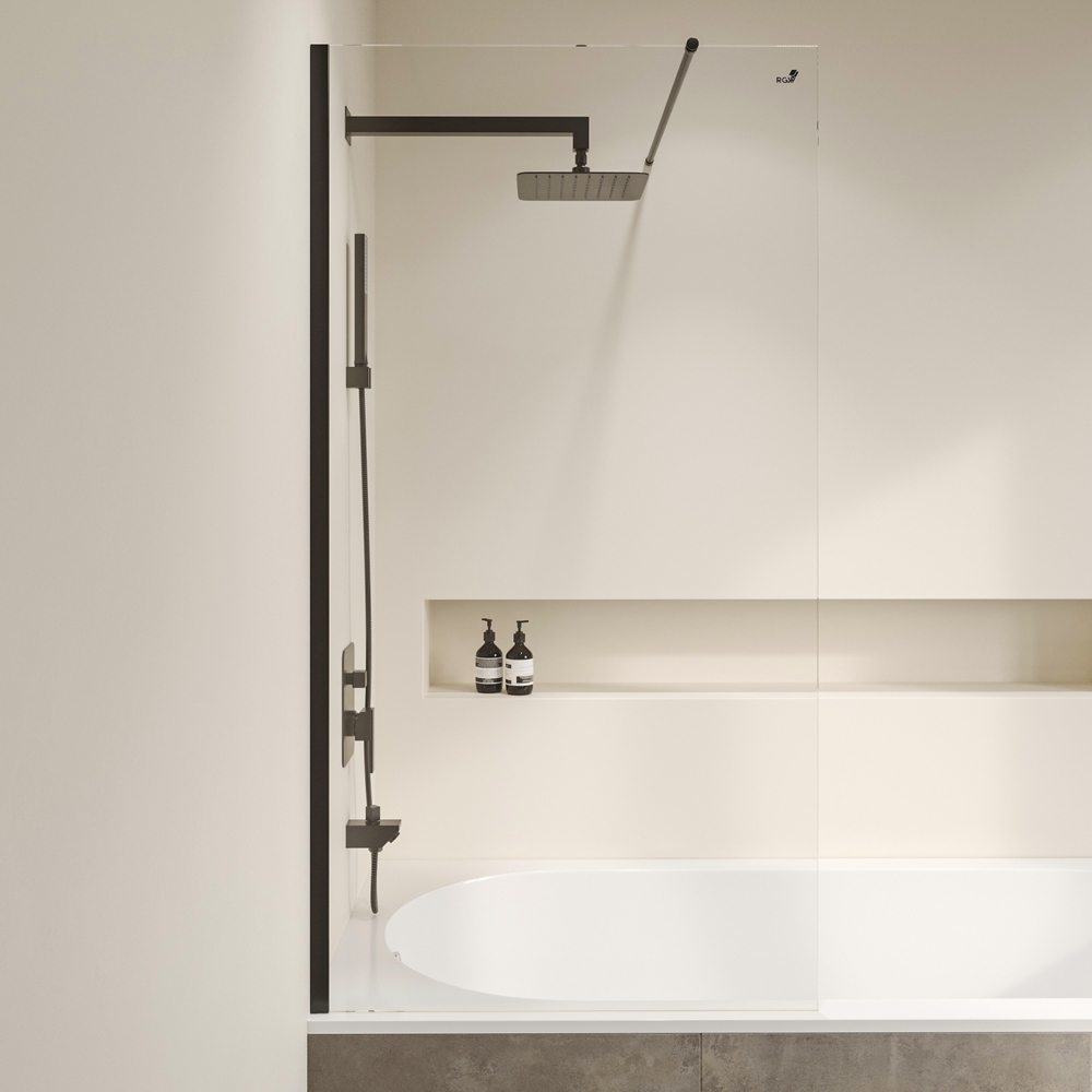 Красивый черный профиль из анодированного алюминия дополнительно подчеркивает современный дизайн шторки и гарантирует ее долговечность. Высота стеклянной шторки составляет 1500 мм, что идеально подходит для большинства размеров ванн. Шторка оснащена покрытием стекла Easy Clean, которое облегчает ее очистку и сохраняет ее в первоначальном состоянии на протяжении всего эксплуатационного периода.