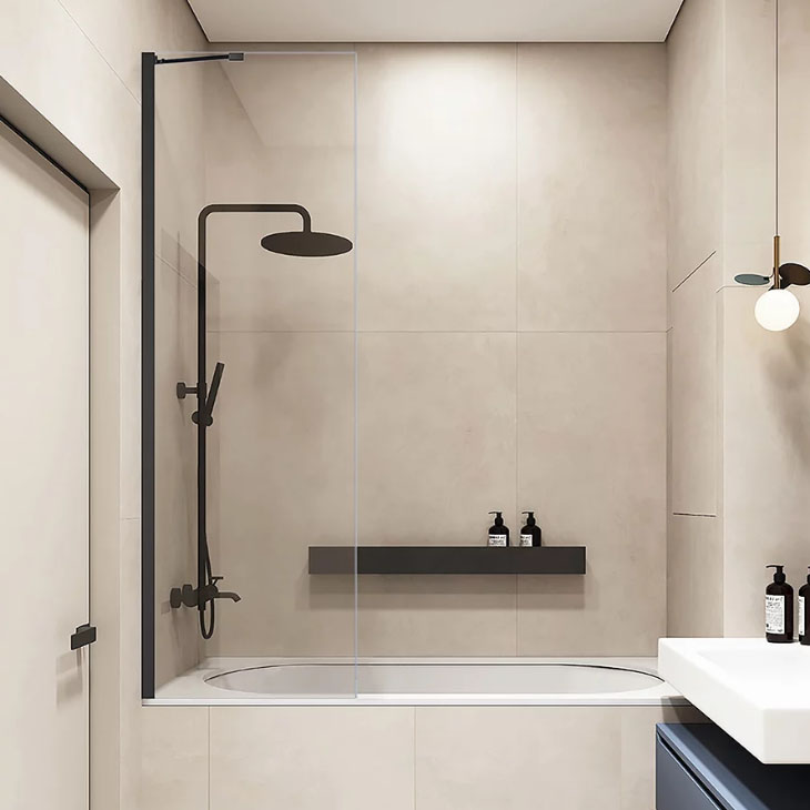 Шторка на ванну неподвижная Veconi Palau PL-84B 50х150 см черный матовый/прозрачное PL84B-50-01-C8