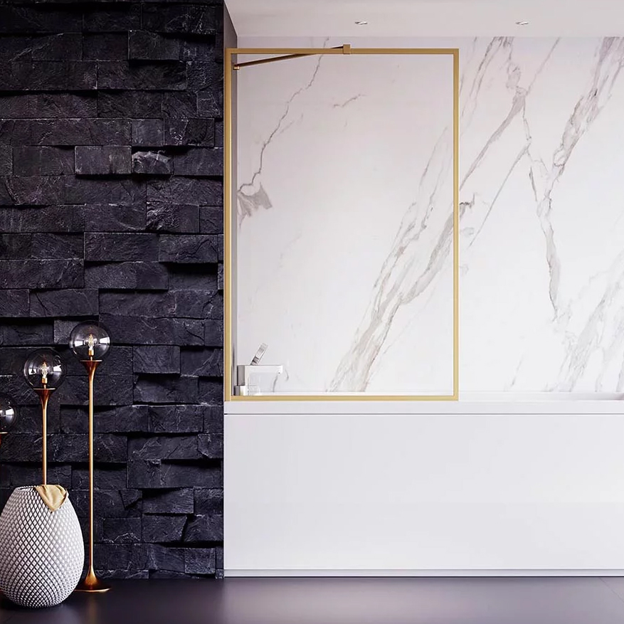 Шторка на ванну неподвижная Veconi Palau PL-85G 70х150 см золото браш/прозрачное PL85G-70-01-C8