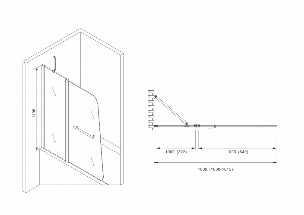 | Конструкция | 1 распашная на 180 градусов+ неподвижная часть |