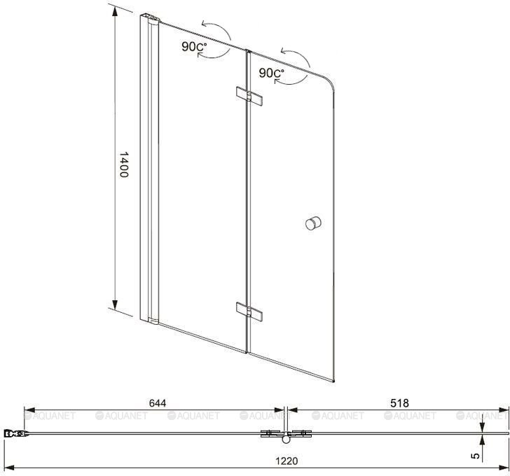 Шторка на ванну распашная Aquanet Beta 4 NF6222-hinge 120х140 см хром/прозрачное 196053