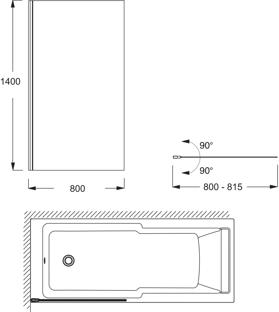 Шторка на ванну распашная Jacob Delafon Struktura (80х140 см) хром E6D042-GA