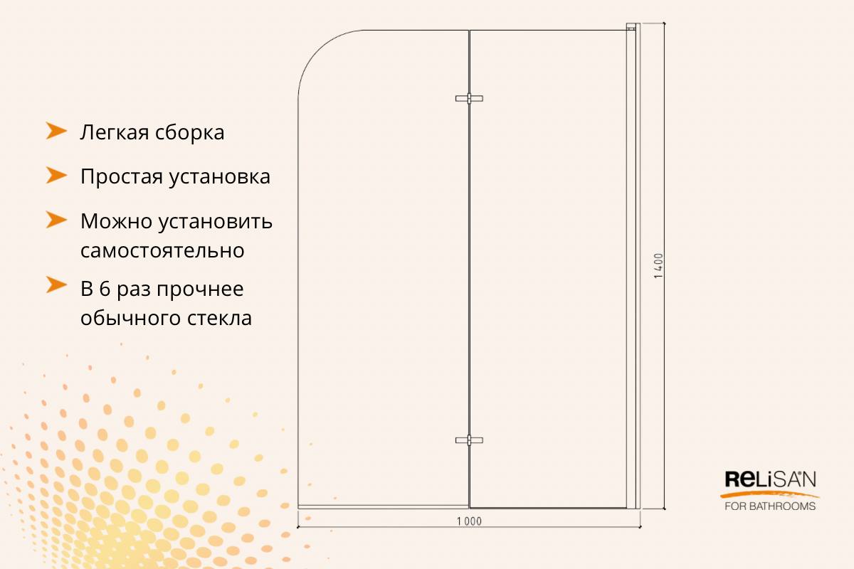 Шторка на ванну распашная Relisan 100х140 см хром/прозрачное Гл000027794