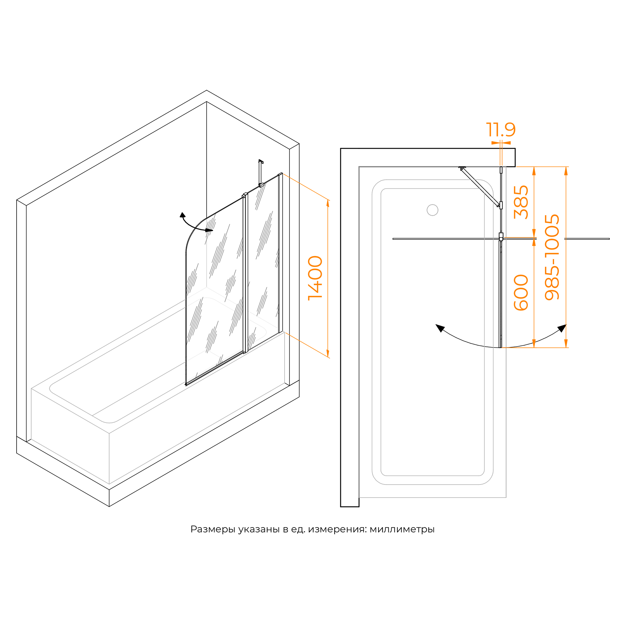 Шторка на ванну распашная RGW Screen SC-011B 100х140 см черный/прозрачное 351101110-14