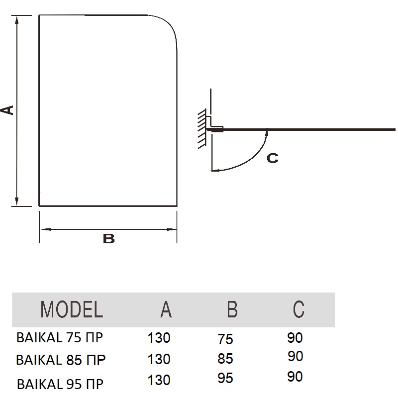 Шторка на ванну распашная River BAIKAL 85 ПР 85х130 см хром/прозрачное 10000008294