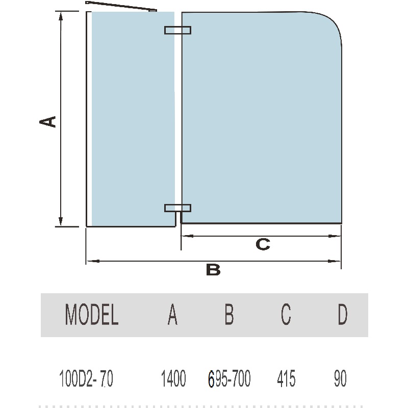 Шторка на ванну распашная WeltWasser 100D2-70 (70х140 см) хром/прозрачное 10000000934