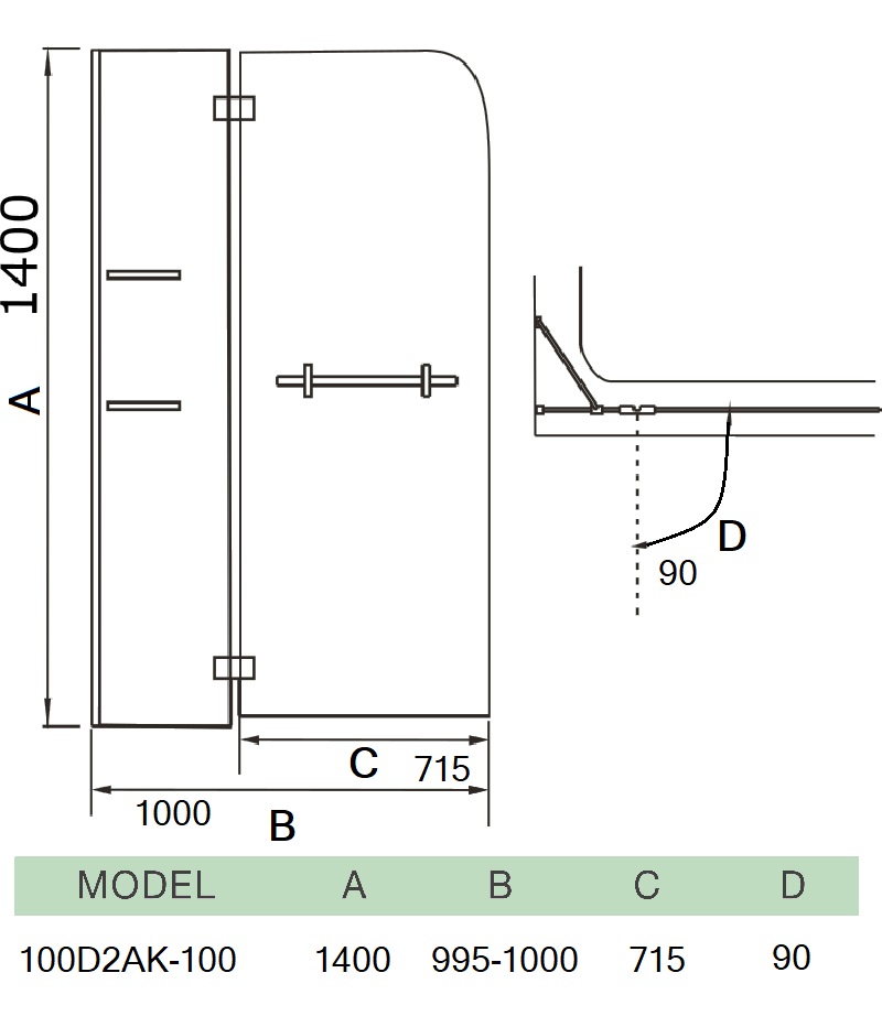 Шторка на ванну распашная WeltWasser 100D2AK-100 (100х140 см) хром/прозрачное 10000001237