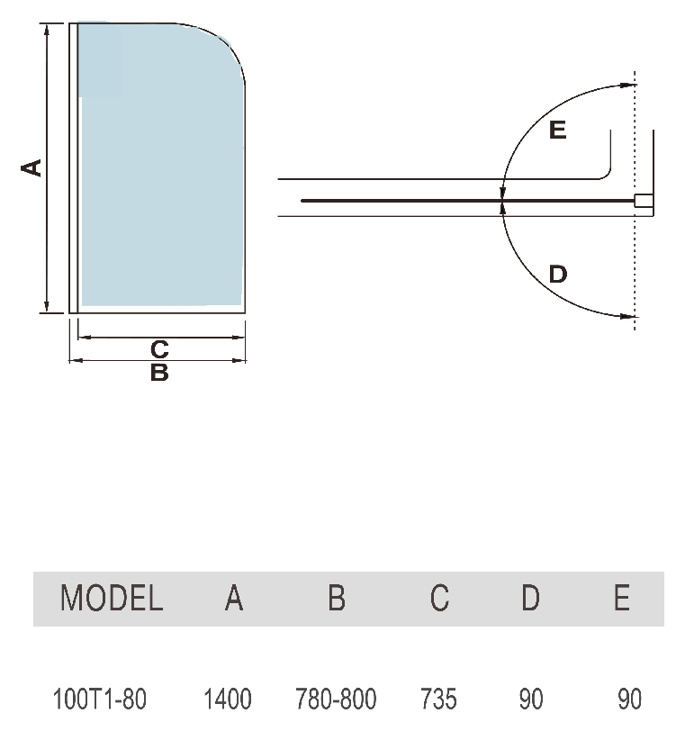 Шторка на ванну распашная WeltWasser 100T1-80 (80х140 см) хром/прозрачное 10000001222