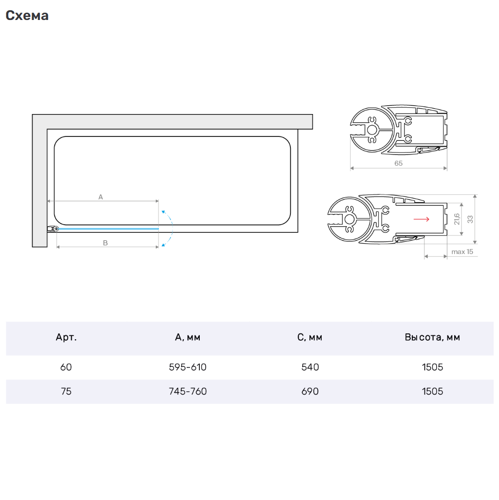 | Особенности | Профиль с функцией подъема |