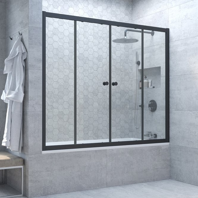 Шторка на ванну Vegas-Glass Z2V NOVO 190х140 см черный матовый/стекло разное