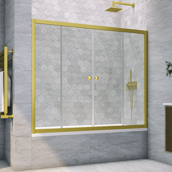 Шторка на ванну Vegas-Glass Z2V NOVO 200х140 см золото матовое/стекло разное