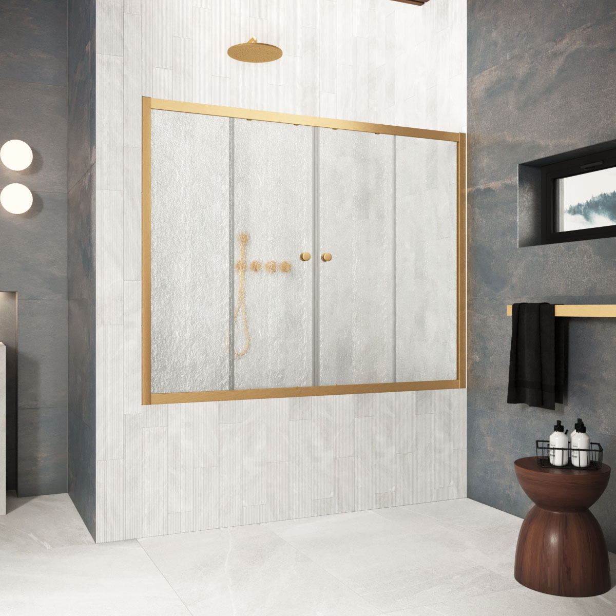 Шторка на ванну Vegas-Glass Z2V Protec 160х140 см золото матовое/стекло разное