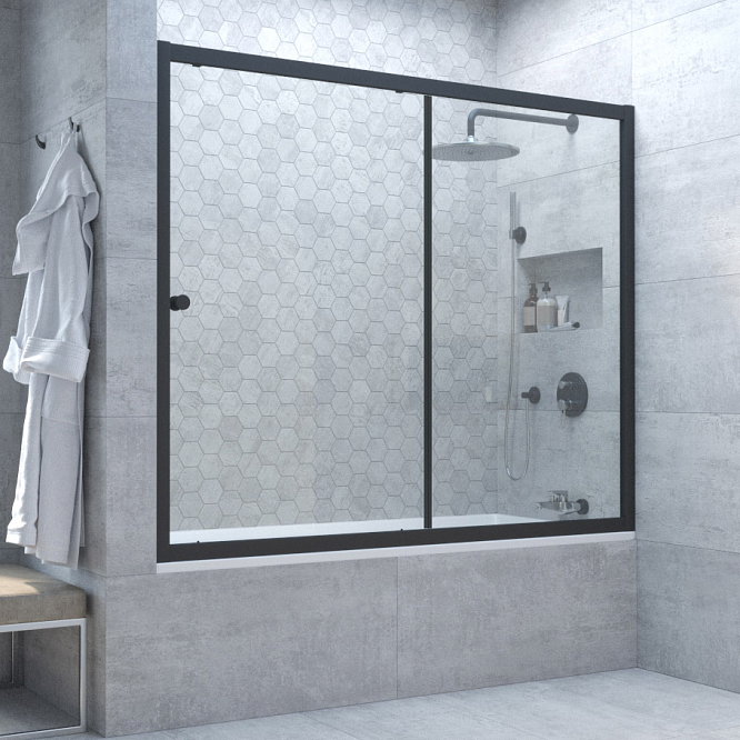 Шторка на ванну Vegas-Glass ZV NOVO 160х140 см черный матовый/стекло разное