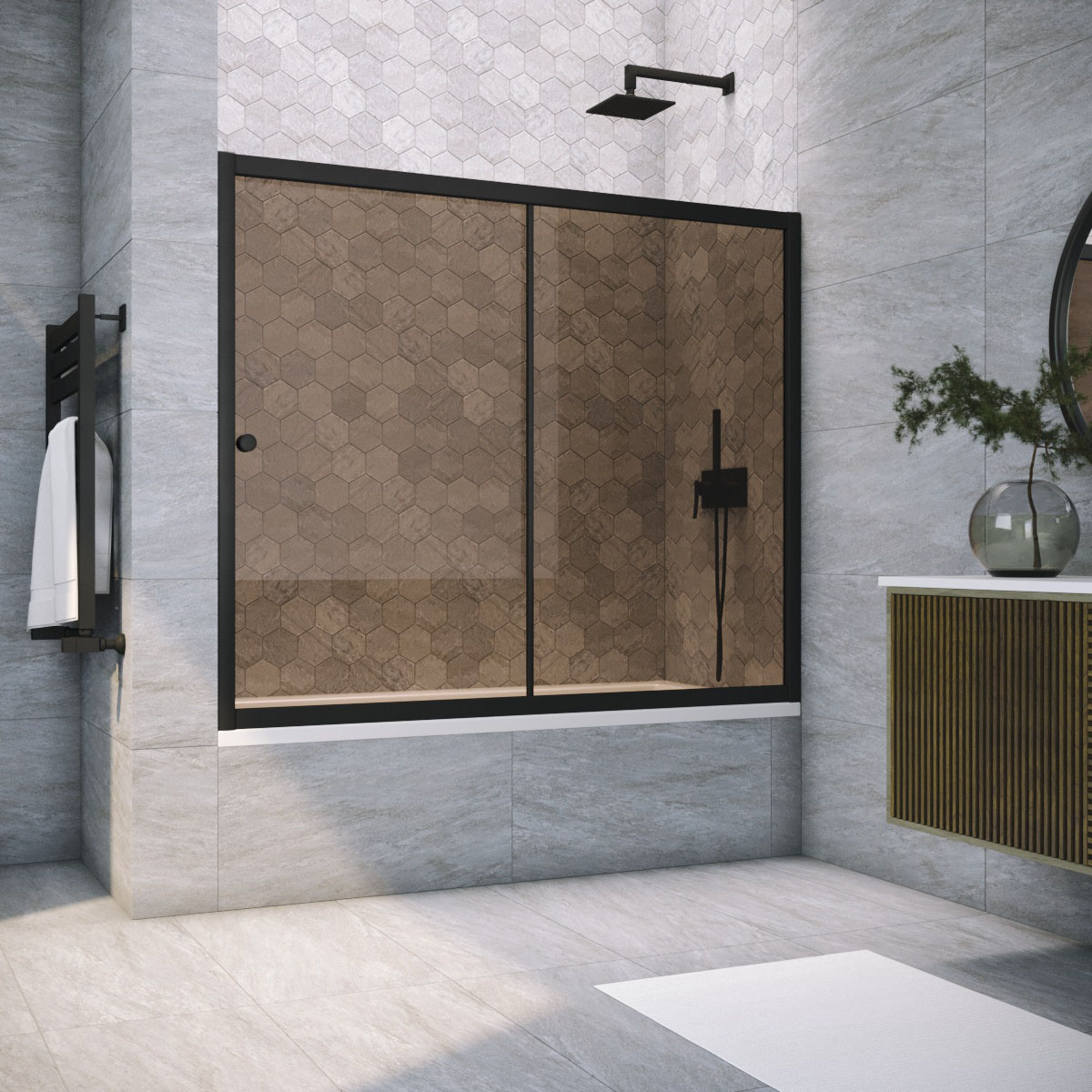 Шторка на ванну Vegas-Glass ZV NOVO 170х140 см черный матовый/стекло разное