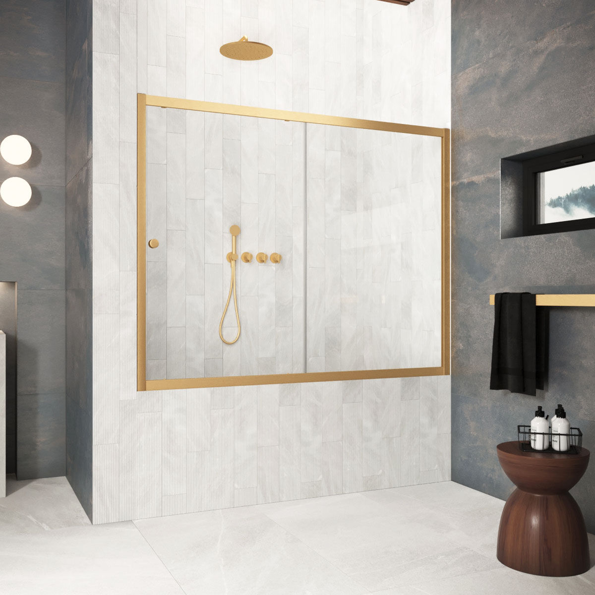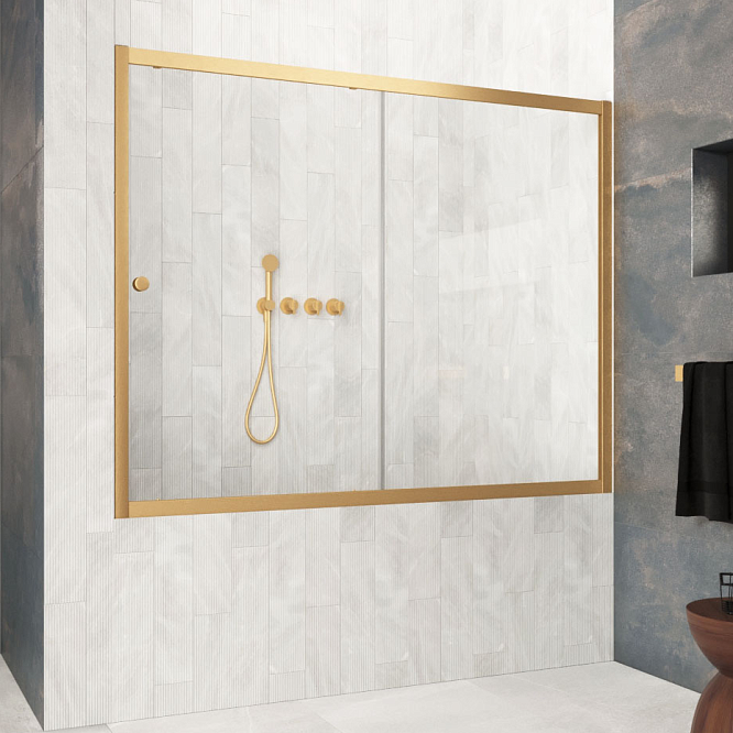 Шторка на ванну Vegas-Glass ZV Protec 150х140 см золото матовое/стекло разное